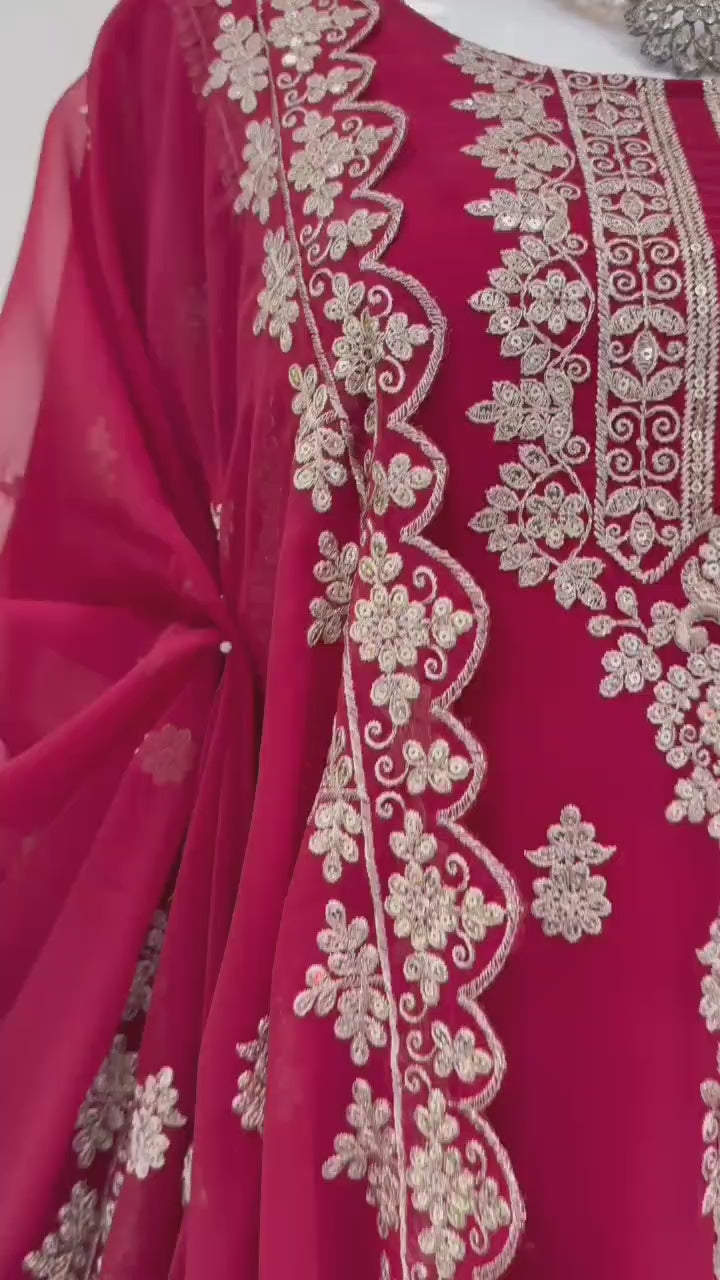 Get ready to dazzle in this premium party wear ensemble – a blend of luxurious Faux Georgette, elegant thread & sequin work, and a flowy sharara silhouette that’s all about grace and glam! Perfect for festive functions, weddings, and classy evenings. 💃